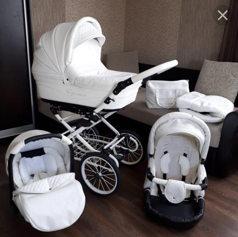 Была белая в эко коже,люлька супер,протер и все.Блок прогулочный-докупала матрасик специальный для данной модели,так как естественно дитю было не приятно сидеть на этой эко коже в жару.Но матрасик имеет свойство немного сползать,и +ребенок по этому матрасику тоже😁Вот на осень/зиму/весну эко кожа да.На лето-нет.Но это лично мое мнение.