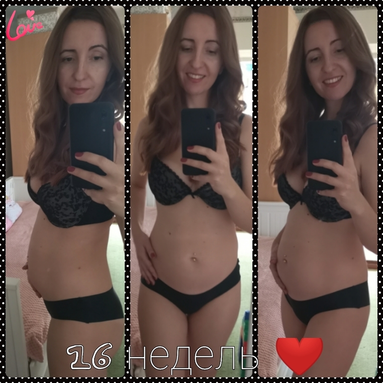 Вот и 16 неделек) 🤗И я как-то в шоке от того, как быстро появился животик! 🙈 Мне кажется в предыдущие беременности, у меня в 20 недель был такой пуз) 😁В одежде скрывать ещё получается!А без неё, уже нет)