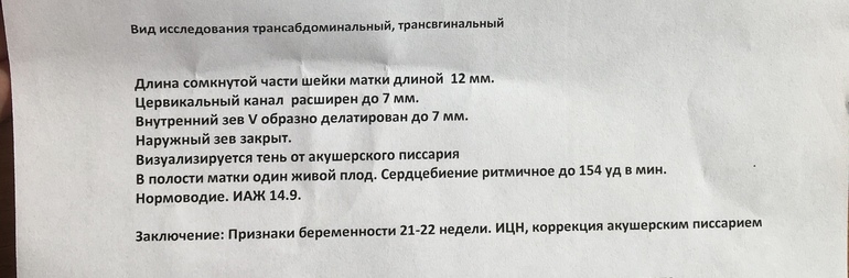 У меня после установки пессария и терапии за 10 недель шейка не сократилась больше 🤞