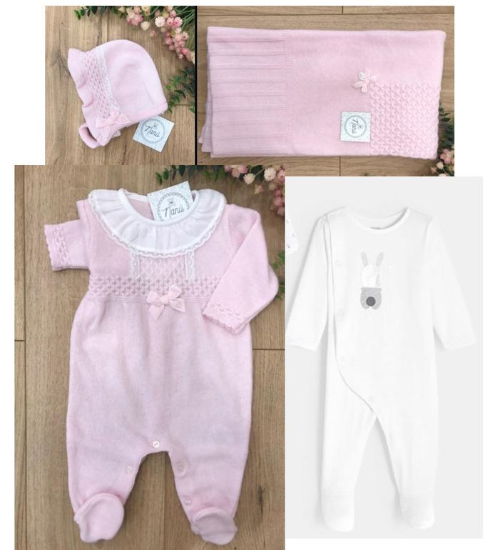 А еще я прикупила вот такой вот шерстяной комплект на выписку (ПДР середина марта) одеялко, шапочка и комбезик, под низ белый хб слип у нас уже есть: