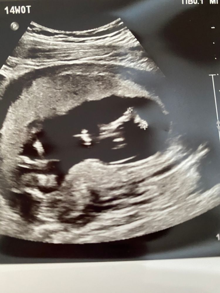 Вес у нас 100 грамм. И по узи теперь опережаем на 4 дня. Врач ничего не сказала, кроме того что все разные дети. И даже измерили длину ступни😅Фотку получила с ножкой-1,30 см☺️ А пол не разглядели, спрятал