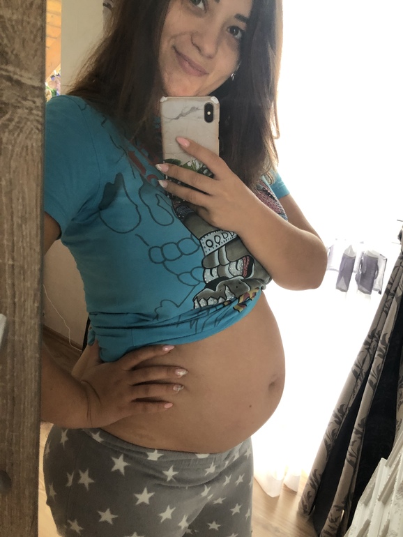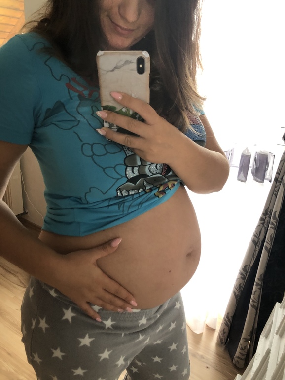 Да я вообще не знаю кто это придумал, у нас таким маразмом никто не занимается 🤷🏻‍♀️ Размер живота ну никак на вес ребёнка не влияет, знаю кучу примеров этому... пусть подольше небольшой остаётся, я не против, даже пуп не вывалился ещё 😅 и что интересно, линии как таковой нет, а с дочкой была яркая🤗 Смотри, нашла старое фото, с дочкой тоже животик был очень даже аккуратный это 37 недель