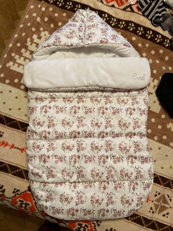 Еще конверт купила. Он не шибко теплый, но с нашей зимой, думаю, сойдет. По него еще комбезик махровый с прослойкой утеплителя.