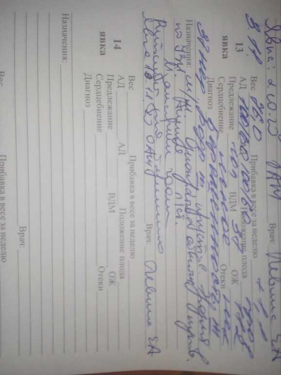 Беременность 3, 37 недель, роды 3. Слово не понятно. Эрозия шейки матки. Однократное обвитие пуповиной по узи. Анемия какой то степени. Дальше назначение лекарств что то там 200 мл или мг это проще показать в аптеке они разберут, витамины для беременных, явка 10.11, общий анализ мочи