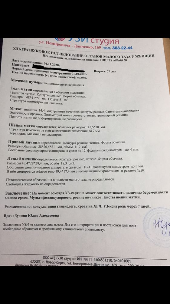 И когда уже хгч перевалит за 1000 - можно будет увидеть ПЯ в матке.