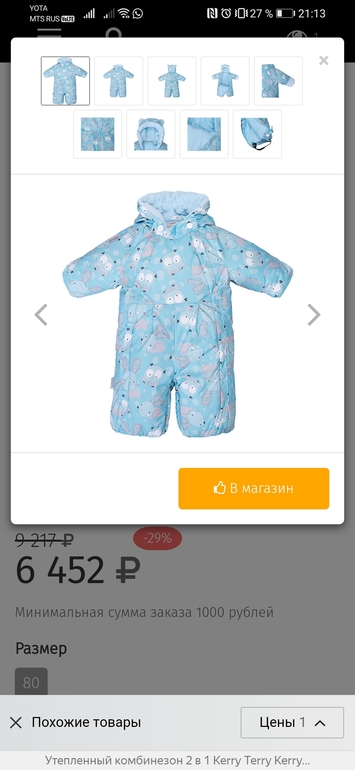 в конце декабря была выписка: хб слип, чепчик, зимний комбез с капюшоном Kerry 250 гр+зимня шапка.