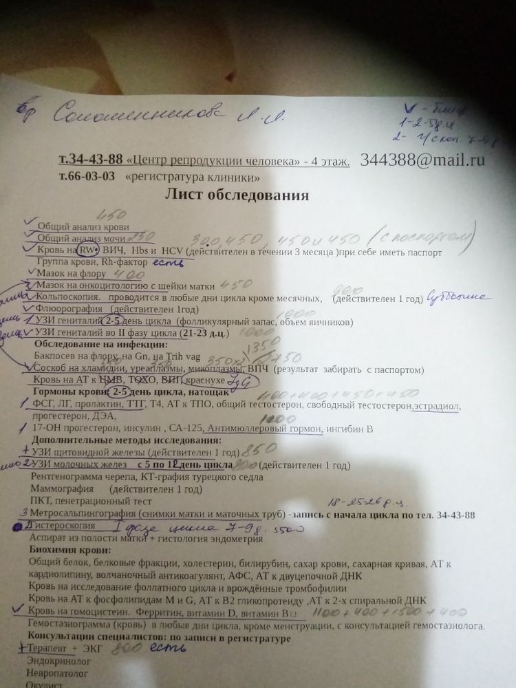 Был точно такой же список, половину сдала бесплатно в ЖК по месту прописки, тем самым сэкономив тысяч 20-25 не меньше. Да и все остальное как ЭКГ и терапевт тоже бесплатно по месту прописки. Так что не так страшно все это.