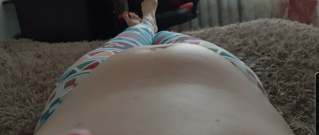 Учитывая, что пузик у меня небольшой, а лежа на спине вообще проваливается куда-то, то её шевеления выглядят так 😄