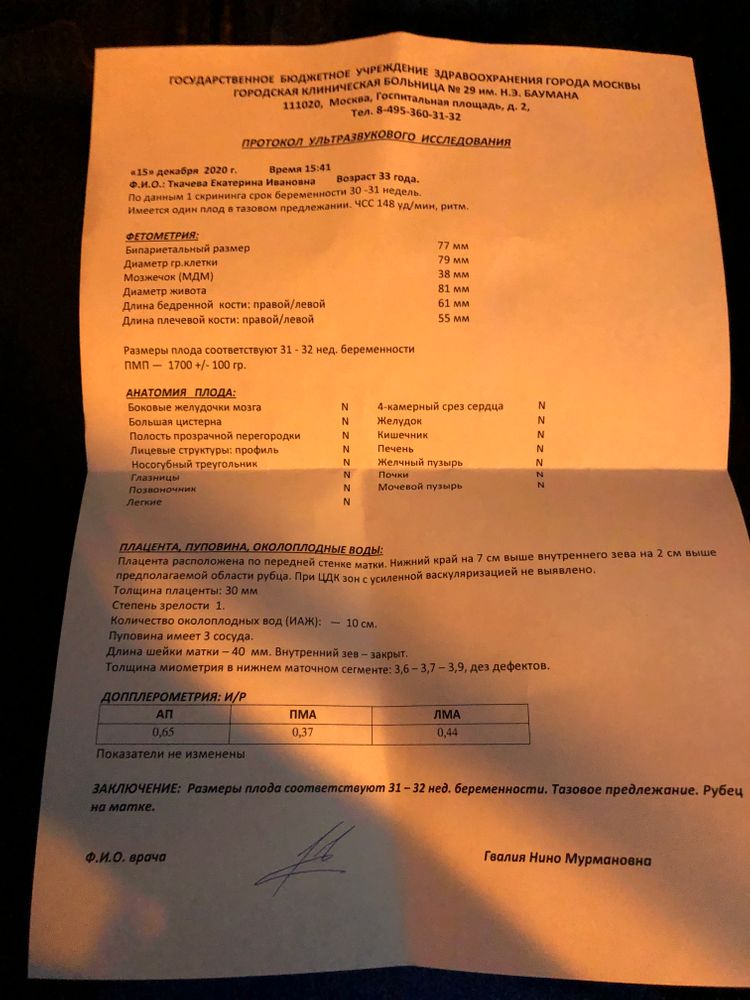 По Узи 31-32 недели,Тазовое предлежащие,я даже не заметила,как перевернулся ребёнок, 1700 кг, всё! Узи было ровно три минуты со скучающим видом,ни фото,ни комментариев,на мои вопросы-ответ был,что я всё напишу,если я не говорю,значит всё в норме,мельком увидела личико,фото не сделали ни одного.