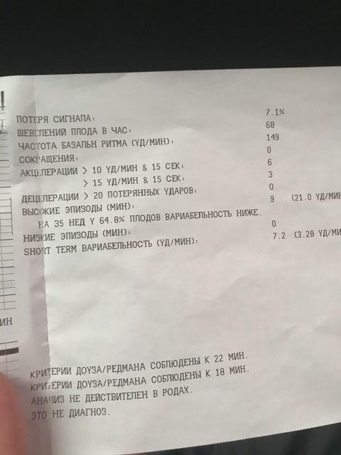 УЗИ, КТГ, доплерДевочки, помогите советом. Решила я пощекотать опять свои нервишки и сделать КТГ, впервые в эту беременность. В ЖК просила сделать, сказали, что не нужно тебе это, все и так в норме. Меня этот ответ не убедил, вот сегодня сделала я КТГ и запуталась ещё больше. На процедуру я немного опоздала, бежала прям. Легла на кушетку на спину, дочка спала. Врач сказала, что нужно разбудить, попросила повернуться на левый бок, поднесла игрушку резиновую к животу и пропищала ей несколько раз, малышка проснулась и немного расшевелилась. Потом похоже почуяла датчики и начала извиваться вся, врач попросила придержать рукой датчик, это ей совсем не понравилась, она била прям по нему. В итоге пульс периодами достигал больше 180, им это не понравилось. Никаких баллов я не нашла, и как расценивать не знаю. Врач написала повторить через 3 дня, За эти дни я накручу себя, как обычно. Может у кого-то были подобные показатели или кто-то в этом разбирается, скажите так ли все страшно?!