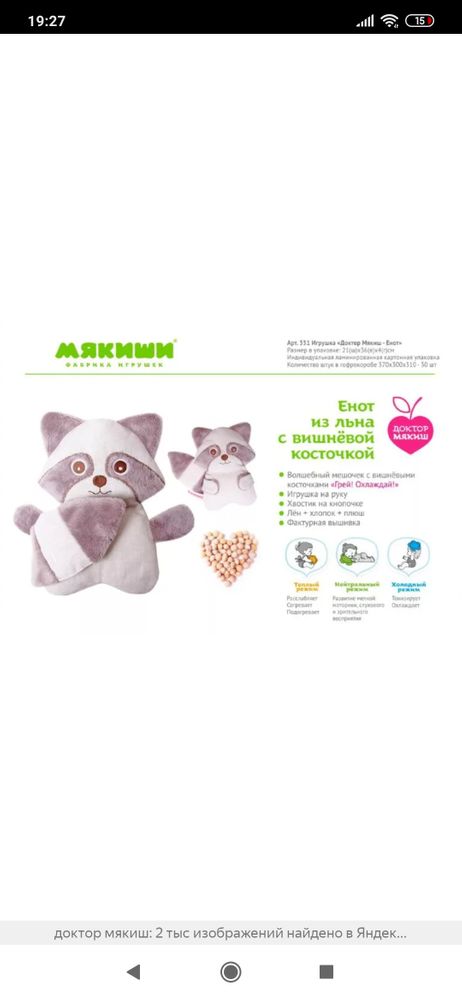 Вот такие есть игрушки с мешочком с вишневыми косточками,их можно греть и охлаждать,я купила слишком поздно такую,греть уже не требуется,а вот охлаждением пользуемся! Когда голова болит,или когда шишку набили, или когда температура и хочется чего то прохладного рядом) покупкой очень довольна))