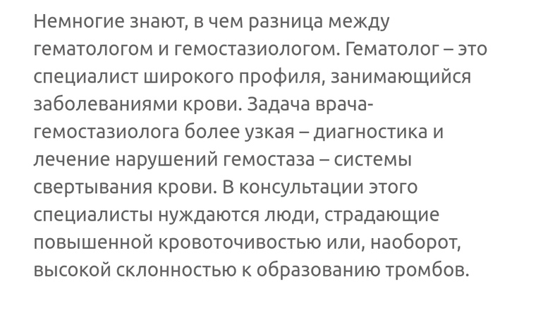 Гематолог немного другой врач, ходила ко многим, и все как один говорили, что нужен не он, а гемостазиолог