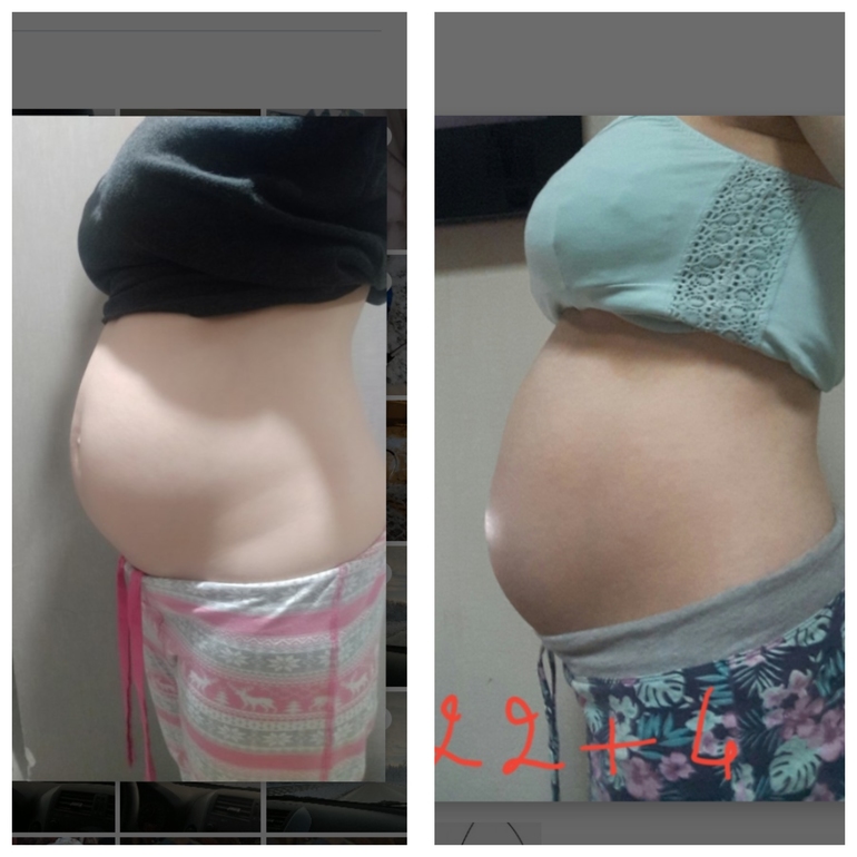 Фото пузиковСейчас срок 16+4, но живот такой же или даже чуть больше чем был в первую Б на сроке 22 недель. Что будет к 9 месяцу???? В первую Б все думали, что у меня двойня из-за большого живота, а в эту будут думать что тройня.... может из-за прикрепления? В ту Б было по задней стенке, в эту по передней.