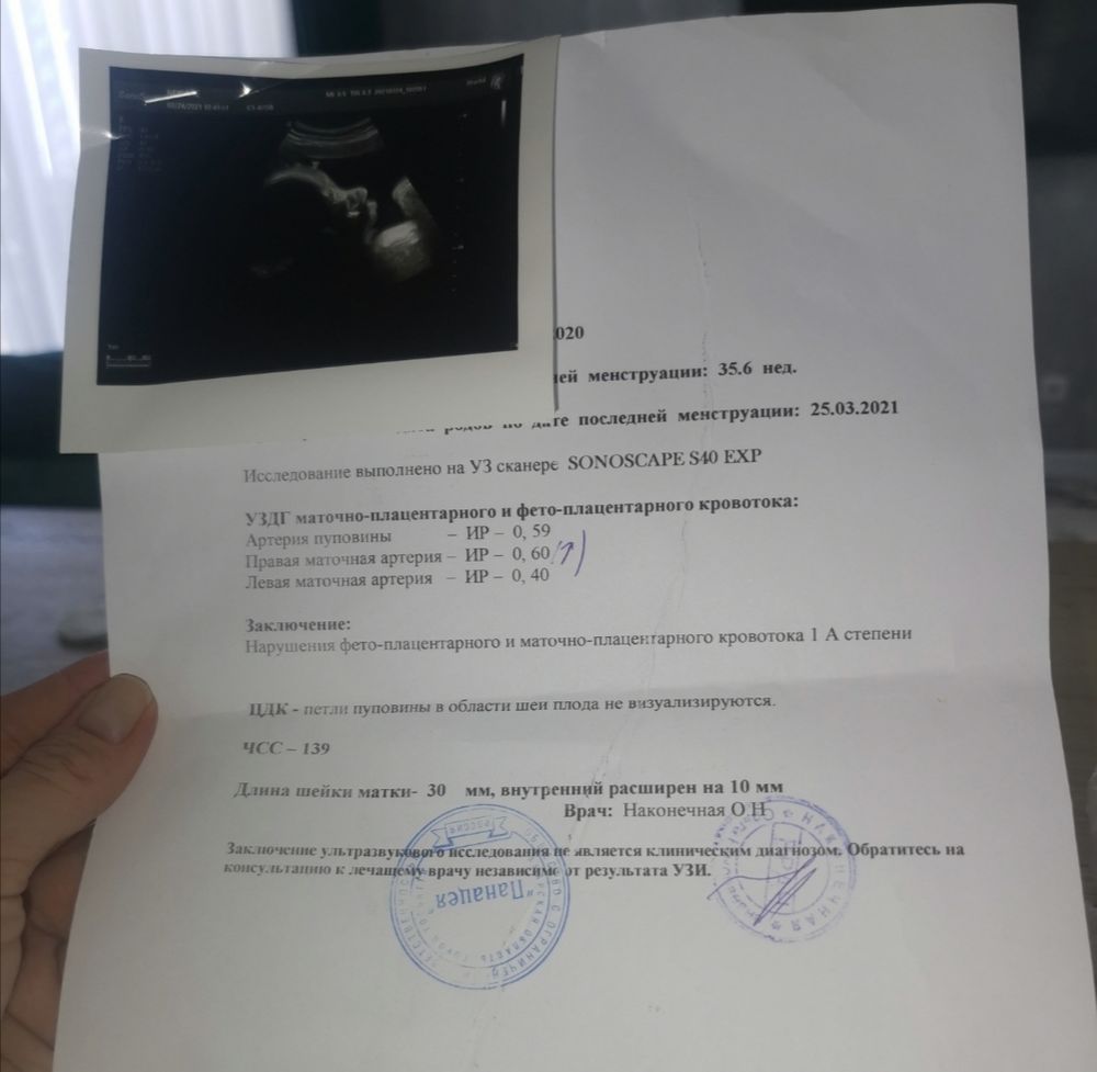 Кто разбирается? подскажите девочки.... 🙏В заключение указано нарушение ФП И МП кровотока 1 степени. Хотя в интернете рылась, всё вроде в рамках на моём сроке. И что можете сказать про шейку(длина в норме) внутренний расширен на 10мм. Она мне об этом не говорила,сказала только про нарушение кровотока.
