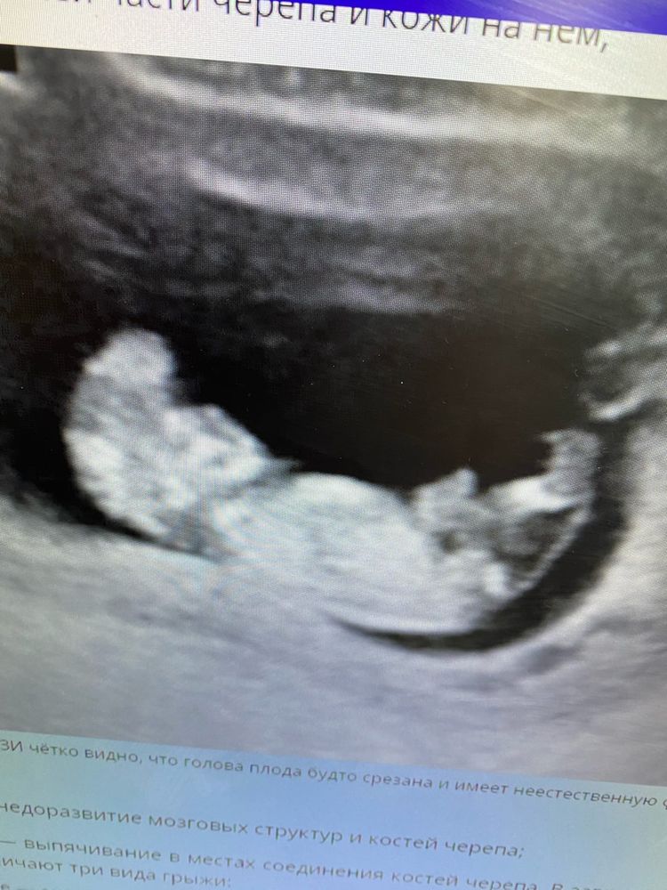 Зашла на сайт патологий и увидела снимок похожий на мой, в описании к снимку: анэнцефалия, акрания и прочая хрень...