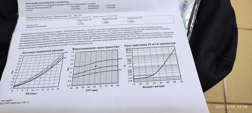 КТР 65, ТВП 2.1, ЧСС 155. По месячным было 12.4 на УЗИ все размеры на 12.6. По рискам, я так понимаю, всё хорошо. Но меня смущает значение ХГЧ. Мало? Или в раз в нормы вписывается, то не надо нервничать?