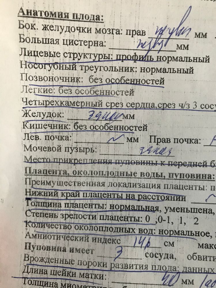 Сходила на второй скрининг, закорючки эти увидела только дома, понять не могу, что написано... все от в порядке с моим малышом?😭 интересует пункт желудок и мочевой пузырь 🙏🏼🙏🏼🙏🏼Я всю голову уже сломала..
