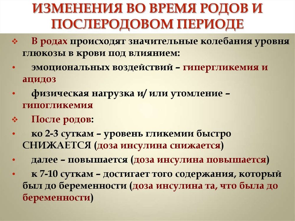 Ниже для сведения, что с поджелудочной железой происходит в родах с теми, кому был поставлен диабет до начала беременности. Соответственно, с нами гсд-никами проиходит то же самое, только в меньших масштабах, то есть инсулин после родов не нужен.
