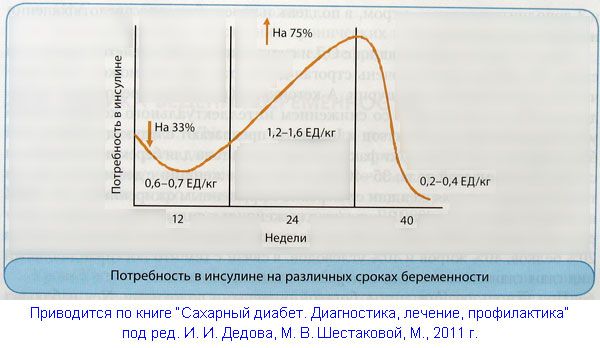 А вот то, что ниже меня расстроило, так как там пик отодвинут аж к 34-36 неделе. Но по общению с девочками, я понимаю, что таких случаев много. Кто-то так и наращивает дозы инсулина до самых родов.