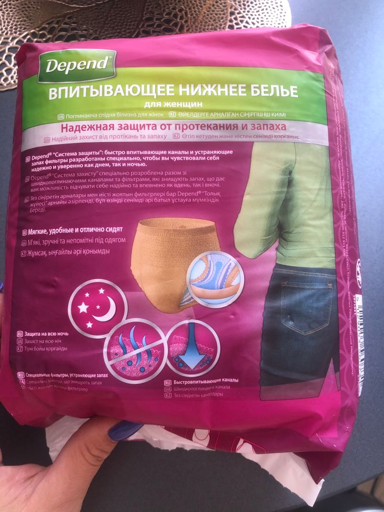Катерина Романова, я брала две пачки, осталась 1 или 2 штуки, трусы-сеточки достала и убрала обратно в сумку, обычные прокладки уже дома использовала) Depend самые удобные оказались