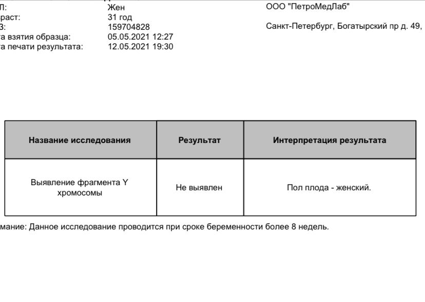 Апрельская, анализ на выявление Yхромосомы ну или просто на определение пола. Я делала в инвитро, там более гуманные цены. А так думаю много где делают😊 вот и мне было очень интересно 😅 любопытство родилось вперёд меня 😆 с сыном я о таком анализе и не знала, ждала узи. Муж меня не поддержал в этом анализе, говорит какая разница, все равно потом узнаем. Но я все равно сделала 😁