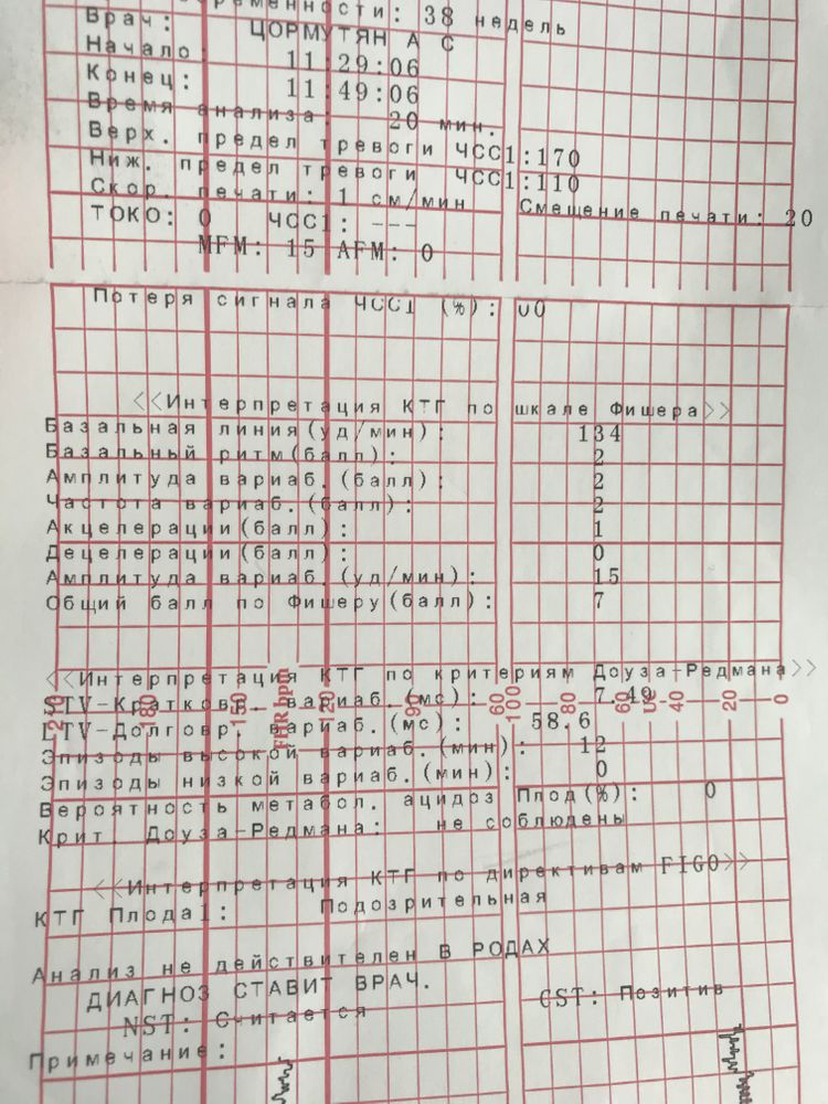 Девочки, посмотрите ктг, пожалуйста. Медсестра сказала, что норма. В интернете 7 баллов это начало гипоксии ( интернету не особо верю конечно) , по узи две недели назад двойное обвитие было, без узлов и т.п. , дитё чувствовало себя хорошо. По ощущениям ничего не изменилось за последнее время, шевеления не уменьшились и не увеличились. На приём к врачу только во вторник, узи с допплером на среду ( ровно 39 недель и будет принято решение что делать с обвитием). Так вот вопрос, паниковать или ждать спокойно приёма врача и узи? Или куда-то поблизости сбегать на допплер ? Вот сижу, а в голове хлеб, вроде и нет повода для паники, а вроде и тревожно, хотя понимаю что обвитие при хорошем доплере на 36 неделе ничем плохим не сулит.... хотя ситуация могла и изменится за 2 недели