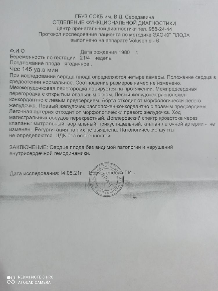 Юлия, со второй дочкой вот так было написано и рожать из -за ФООО в 20 недель беременности направли в областной перинатальный центр и затаскали по ЭХО кг после родов