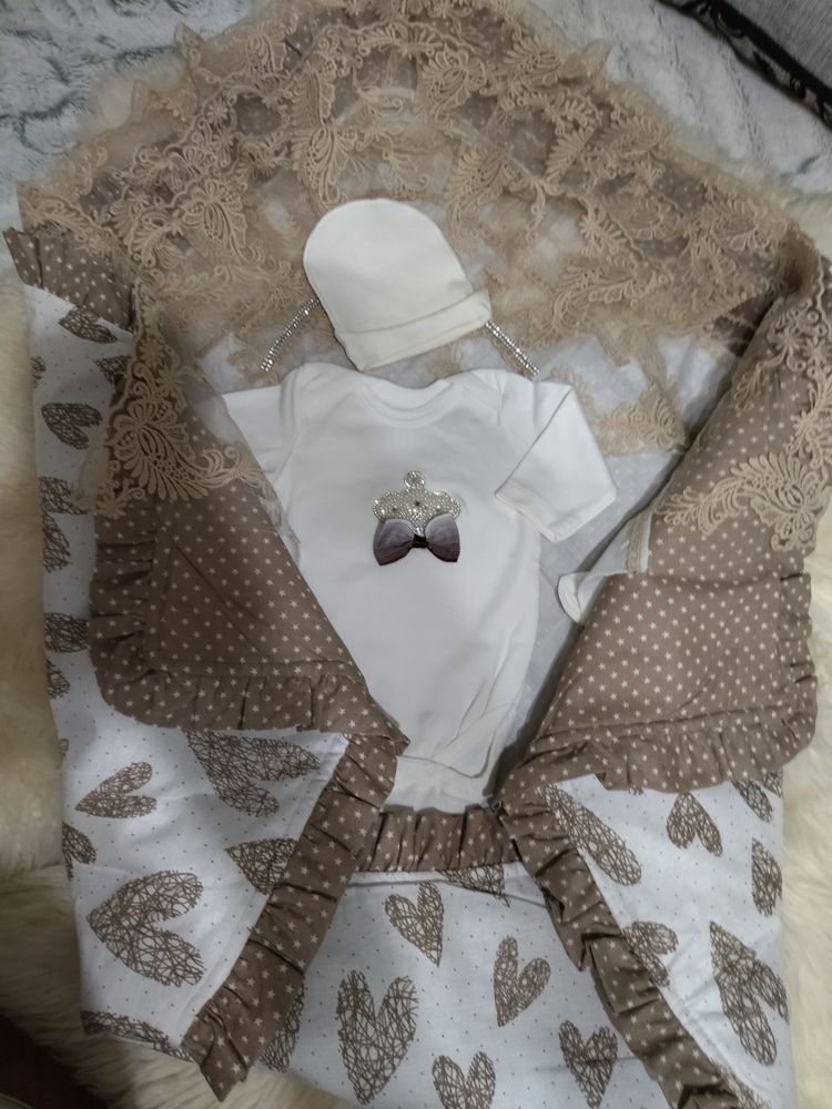 Наряд на выпискуНаконец то я собралась с силами, нашла время и на первое время сшила малышастику приданое. Осталось совсем по мелочи докупить в РД( прокладки, памперсы и ещё что то из списка) и я спокойно жду часа Х . А то не люблю когда не подготовлено что то.
