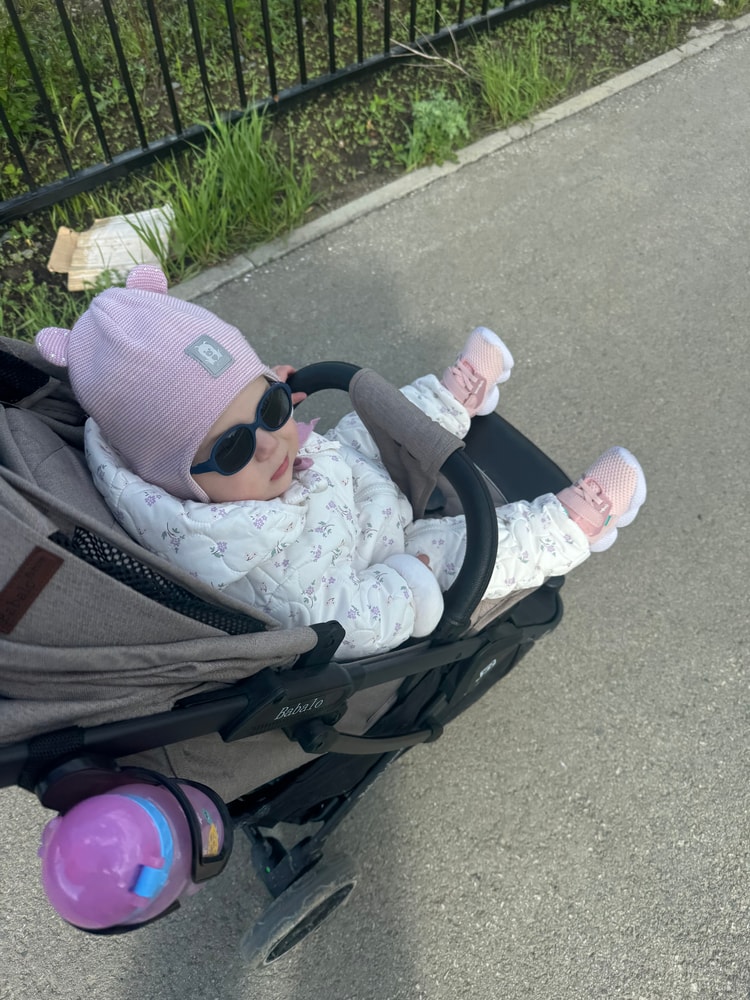 Вообщем перейдем к Маюше. Наконец то мы смогли нормально погулять 😍 она не выкручивалась из коляски и не щурилась. Ехала спокойно и смотрела вокруг.