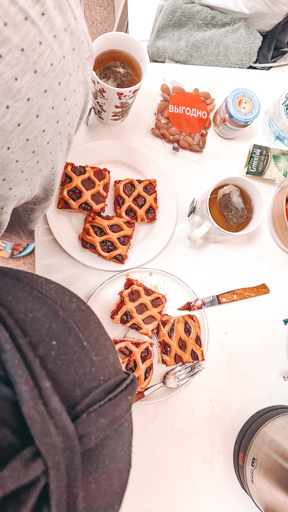 Вчера себе чаепитие устроили, я подумала ну когда я еще пирог с вишней то поем как не сейчас 😅