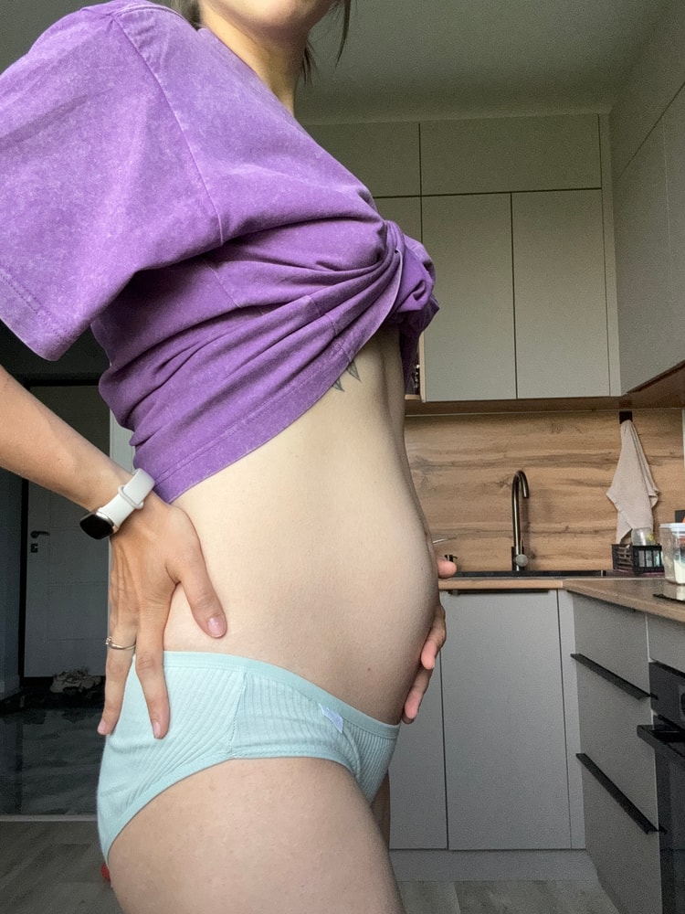 Фото пузиковЖивотик стал хорошо округляться 🥰 На следующей неделе пойду на узи, последний раз была на втором скрининге, там к сожалению было полное предлежание, надеюсь что за 7-8 недель картина изменилась благодаря росту пузика и матки
