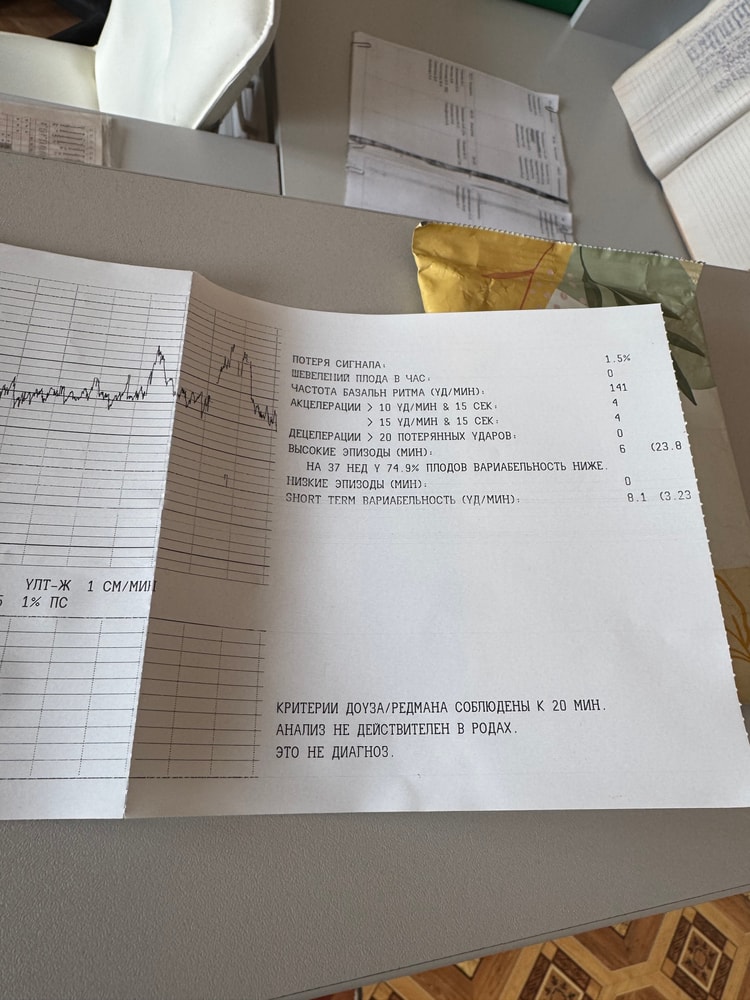 Девочки всем доброе утро, подскажите кто разбирается, сделала сегодня ктг, но что то оно кривое очень, баллы аппарат этот не пишет. Может кто знает, нормально тут всё или есть повод понервничать, срок 38 недель