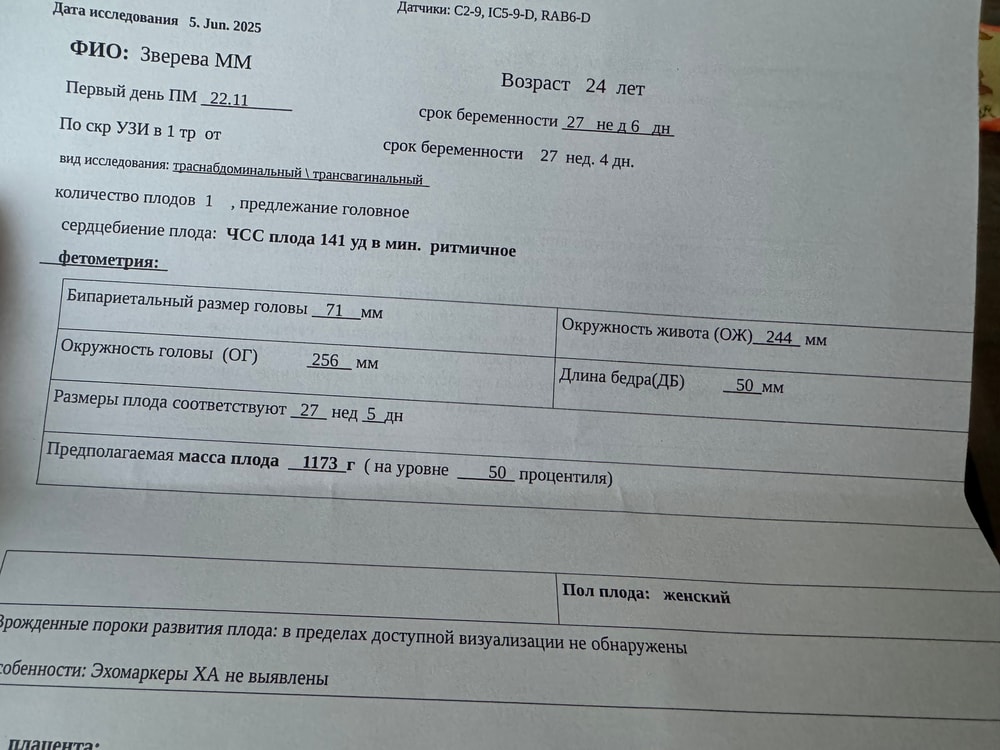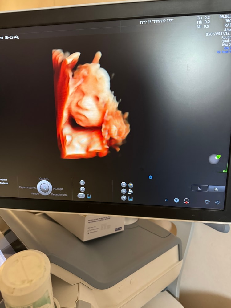 УЗИ, КТГ, доплерНа первом скрининге поставили краевое предлежание плаценты, а на втором уже огорчили тем, что предлежание полное и край заходит уже на заднюю стенку. После этого я решила принципиально не читать истории с предлежанием и дать тебе установку, что лежать в стационарах и даже дома как хрустальная у меня нет возможности, поэтому плацента должна подняться обязательно. И вот впервые после второго скрининга я сходила посмотреть как там обстоят дела с плацентой (она поднялась на 2см от зева🥳) + удачно вышло сделать 3д🔥 Сына ловили в 4 разных клиниках с 27 до 37 недель, но он так ничего и не показал, а тут девчуля решила порадовать маму 😍