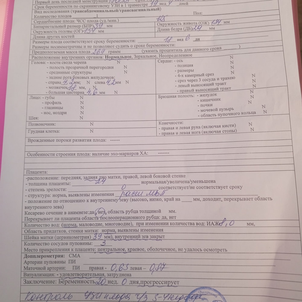 По 1 скрининга 19.4 недель