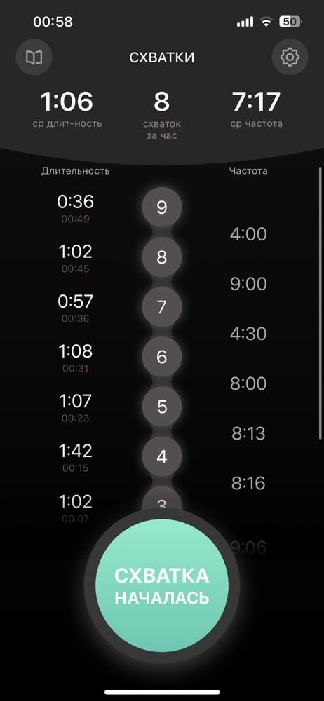 Эва , а 4 минуты, это интервал когда я с кровати поднялась. По 8 минут это было в основном когда лежала. Стабильно. А встала в туалет тут же прихватило. Потом походила, легла и снова прихватило