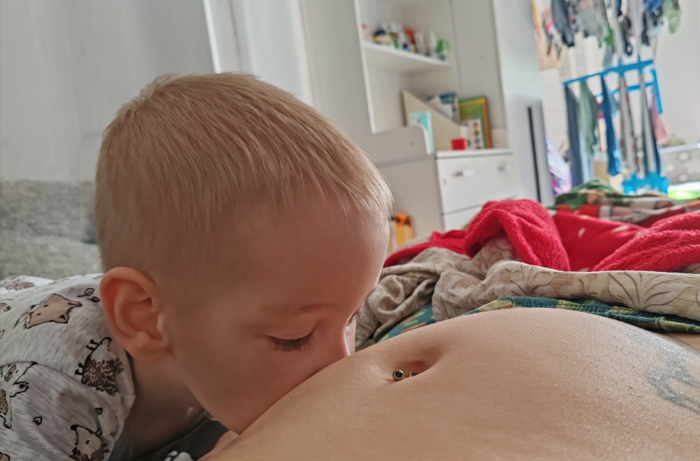 Арсений ждёт братика, постоянно гладит и целует его😀