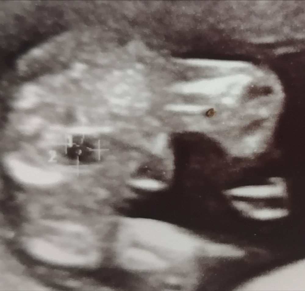 Многоплодная беременностьСнимок сверху. Смотрели животик. Получилось так сфотогрофировать. С попы было всё зажато. Один малыш из двойни. Срок 16,4