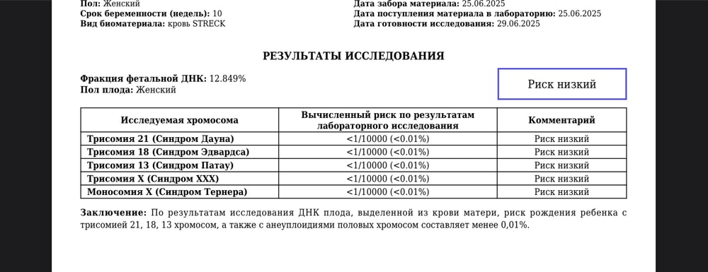 Я тоже год назад делала НИПТ, помню как радовалась, что девочка 👧 сейчас моя девочка со мной уже ☺️
