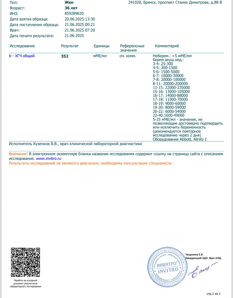ХГЧ за 20.06 но Инвитро