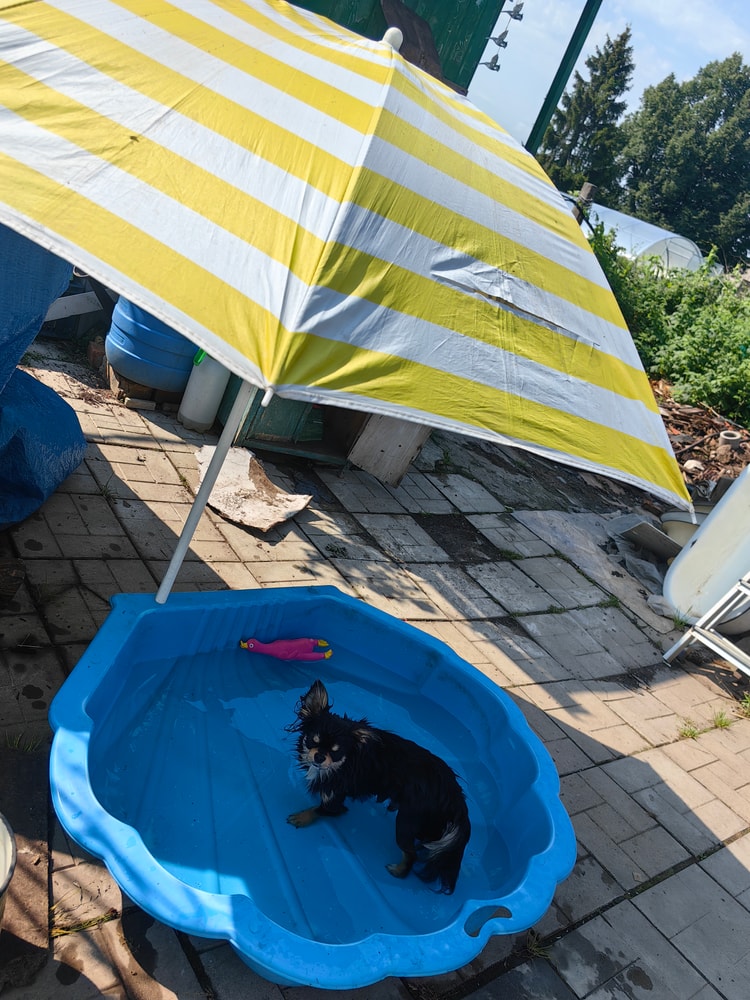 Умираю от жары. У нас +34 верните мне прохладууу😭 купаться тоже нигде нельзя кроме душа. А он не помогает. Сын в озере купается, собака в мини бассейне, а я таю...