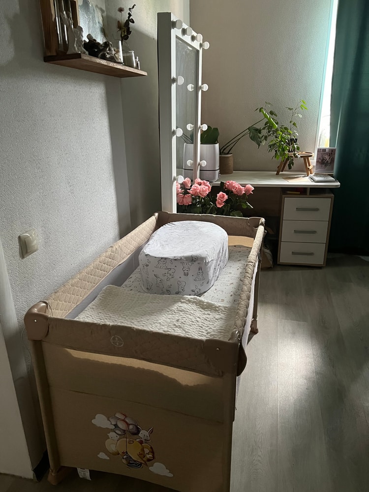 Вчера поставили кроватку, взяли кроватку-манеж. Она и как приставная, и как обычная, в общем, мне о очень понравилась. И с собой можно брать куда угодно))