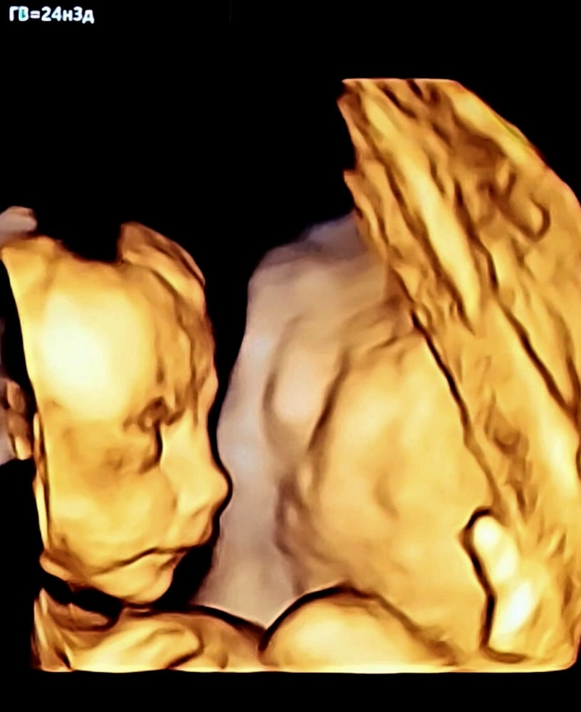 Примерно с 11 недели стало ясно, что позы малыша повторяют позы мужа. УЗИ выпадало обычно на выходные, и мы шутили, что сын лежит в типичной позе "субботнее утро айтишника", только мака на коленках не хватает.