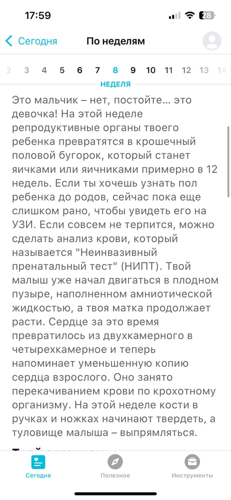 Просто если окажется все-таки слишком рано и вам придет результат «девочка», он может быть недостоверным из-за того что еще пока в крови не обнаружили У хромосому. Или тогда пересдать через какое-то время для подтверждения результата) я помню когда сдавала, то там было предупреждение, что если сдаете раньше срока (8-9 недель), то рекомендуется повторный анализ через пару недель