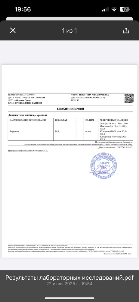 Алина Ахметова, нет, достаточно пропить курс восполнения железа. У меня было 12 за месяц подняла до 42.