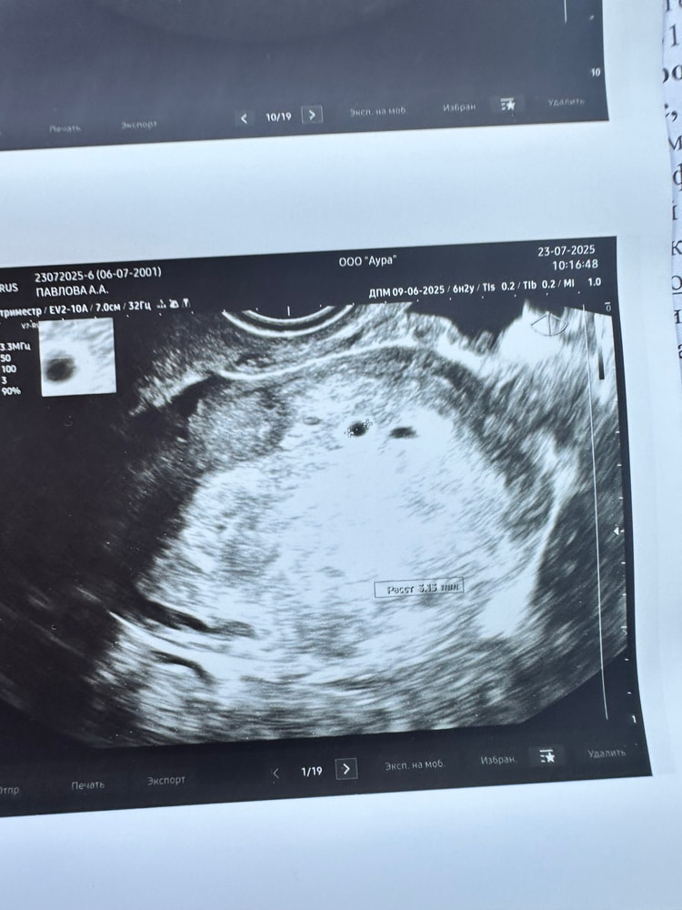 Сходила на узи, написано одно плодное яйцо, а по снимку как будто бы их два, может конечно это кисточка какая нибудь, но мне ничего не сказали, 😅 срок совсем крошечный, на контроль только через две недели