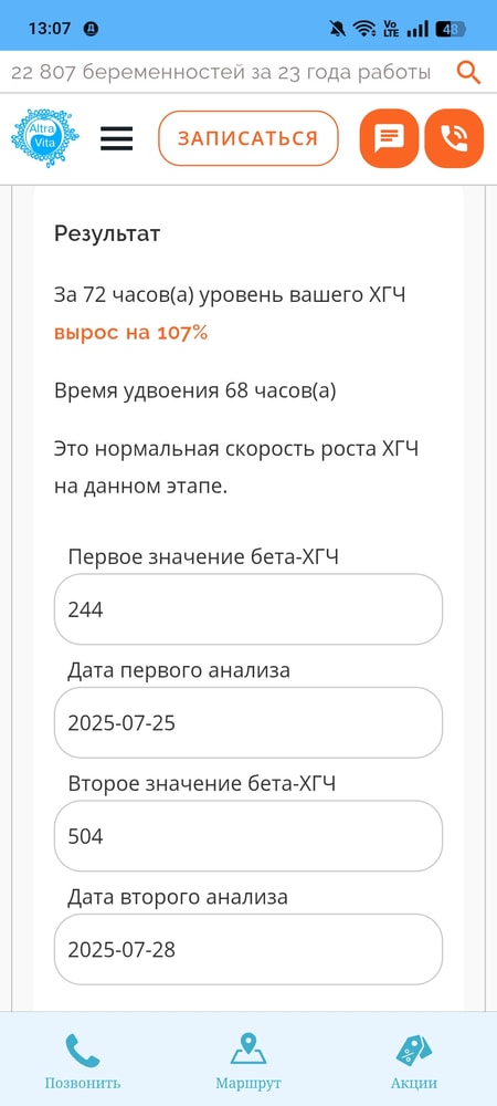 Я уложилась в диапазон 72 часов на удвоение хгч ... Очень сильно переживала когда через 48 часов он вырос только на 58% ,но увеличился на 107% за 3 суток , что не может не радовать