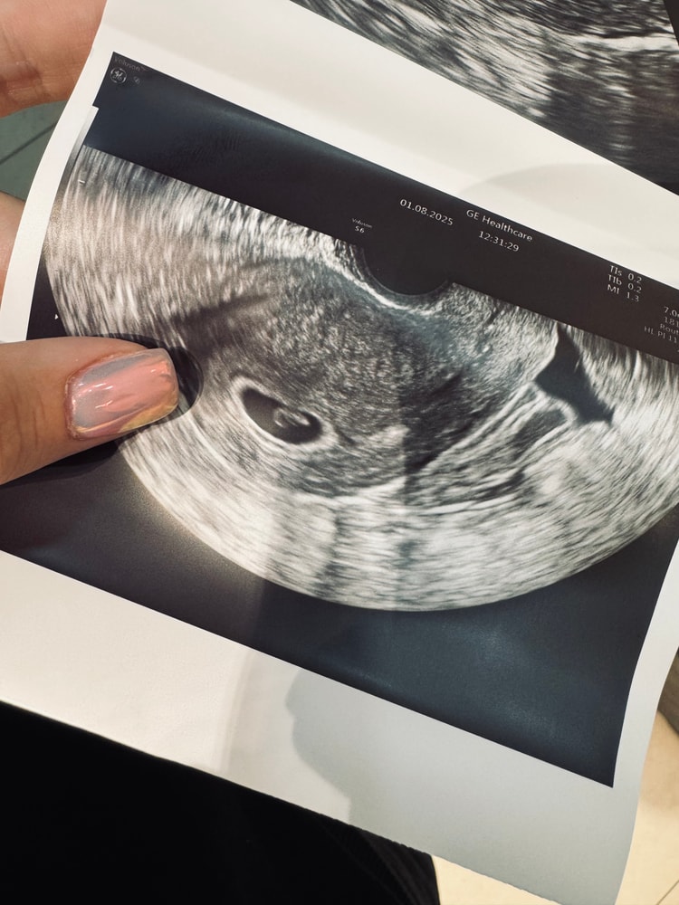 Была на повторном узи. Срок по месячным 6,6. Эмбрион теперь визуализируется, ктр 4,4 (соответствует 6,1). Малюсенькие мы совсем еще, но овуляция была позже на 2-3 дня, поэтому не паникую 🙏🏻 Дорастем 💪🏻 Сердечко не включали, но показали мерцание на экране 🥹