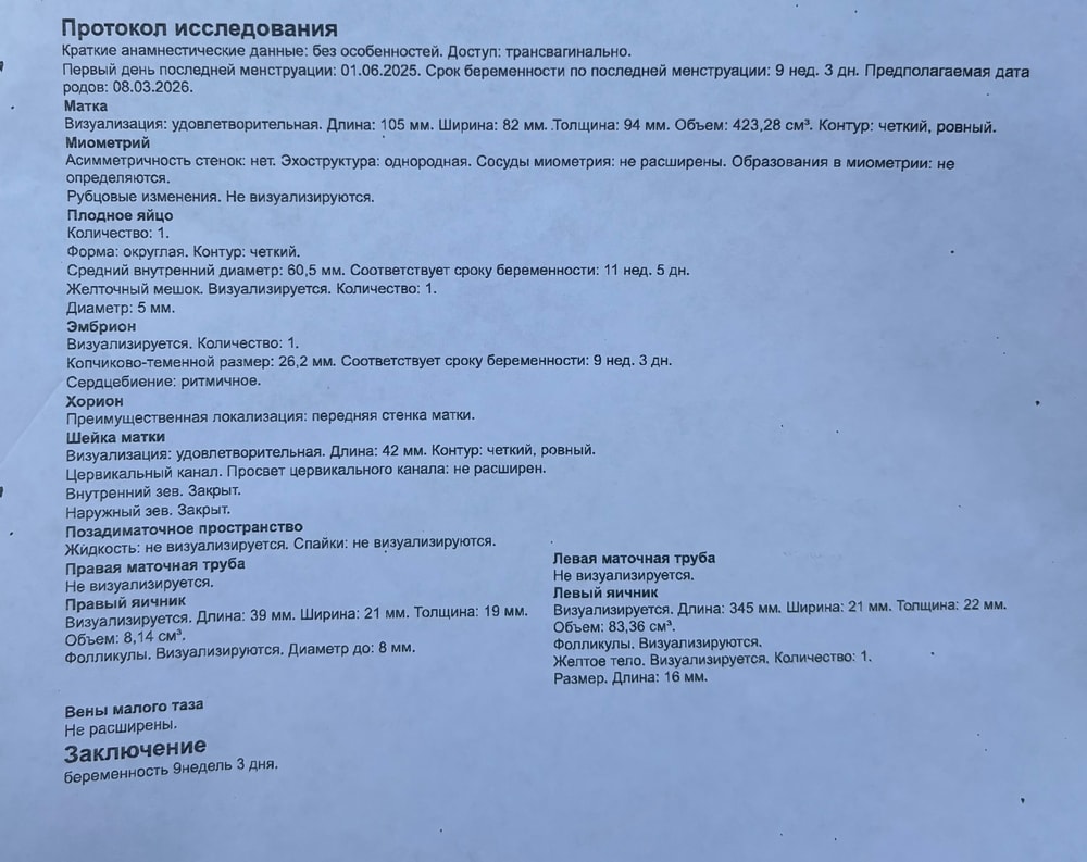 УЗИ в 9.3 недель и самочувствие