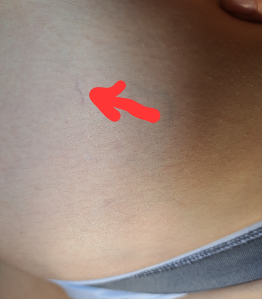 Вот у меня растяжки выше бедра, на животе нет пока