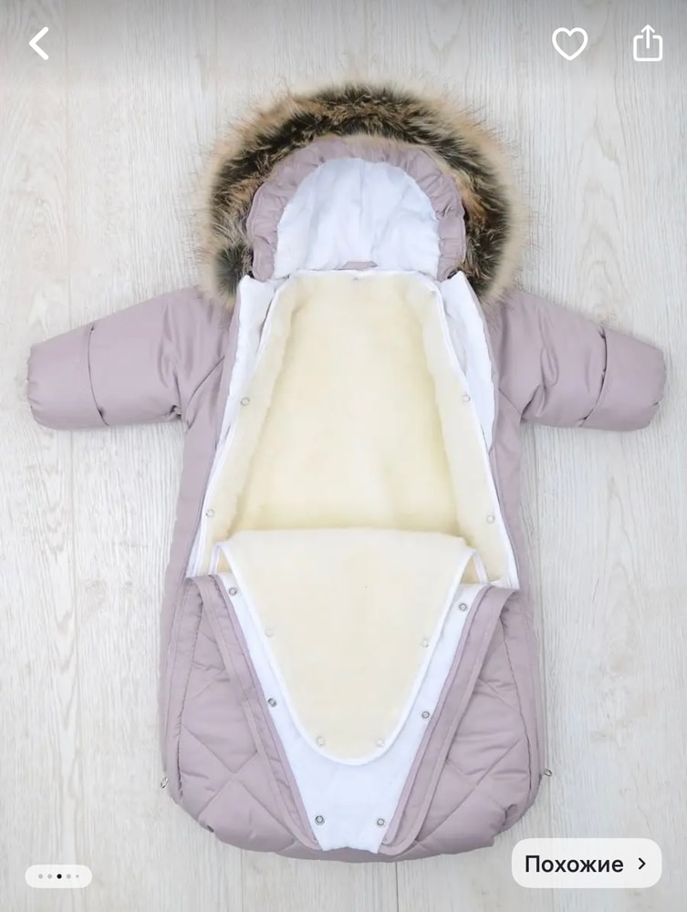 С первым ребёнком был такой молочный конверт керри. На мой взгляд идеальный, очень мягкий, тёплый, капюшон отличный. Одевала слип, флисовый комбез и этот конверт. Сейчас второму ребёнку 5 месяцев, на зиму тоже керри возьму.